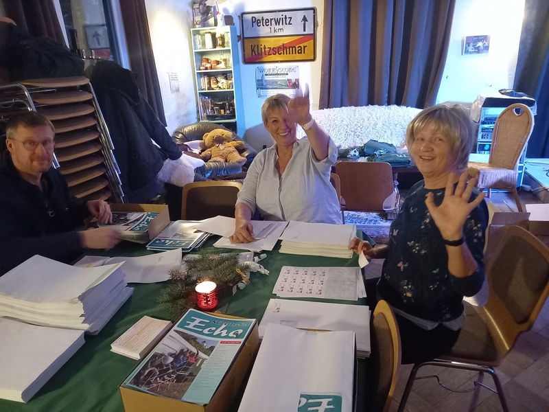 Am 16.12.2023 trafen sich wieder Mitglieder und Vereinsfreunde zur Weihnachtsfeier. Aber bevor es zum Genießen kam, wurden rund 1000 Echos verpackt und zur Versendung vorbereitet. Fleißige Hände bringen schnelles Ende.