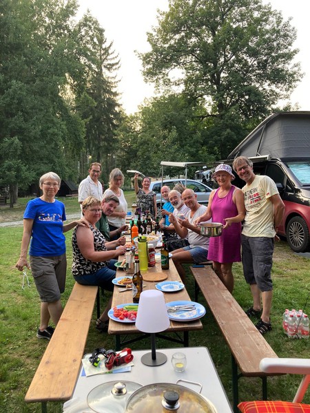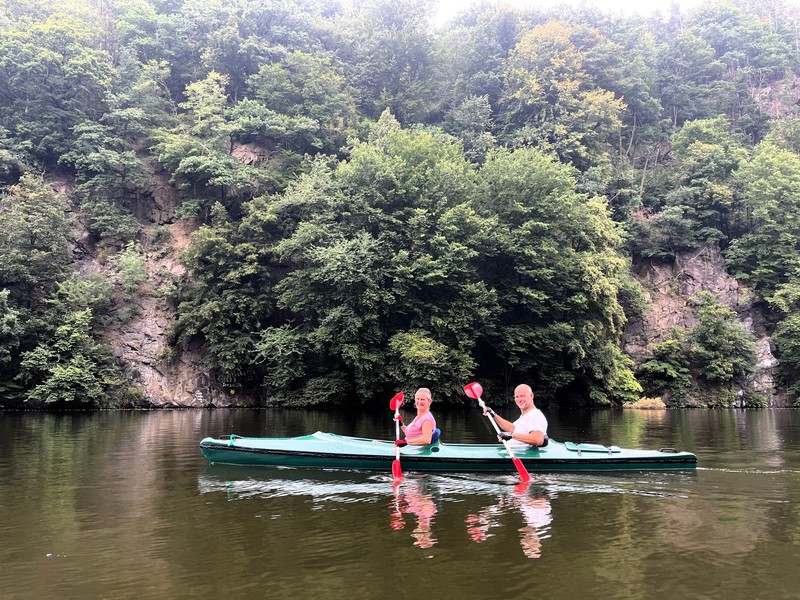 Vom 15.08.-17.08.2025 stand eine Paddeltour an der Talsperre Kriebstein auf der Vereinsagenda. Es machten sich 16 Enthusiasten auf den Weg zum Campingplatz direkt an der Talsperre, um ein entspannt-sportlich-kulturell-gemütliches Wochenende zu verbringen. Ob im Zelt, Wohnmobil oder Bungalow – der Aufenthalt auf dem kleinen Campingplatz war unkompliziert, angenehm und erinnerte von der Ausstattung her ein wenig an längst vergangene Zeiten. Die Tour ging entlang der Talsperre.